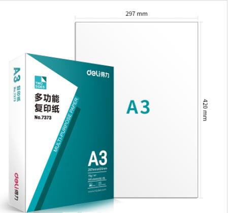 得力/deli A3-70G 復(fù)印紙 得力/deli A3-70G 厚度96 平滑度36 吸水性26 A3-70G