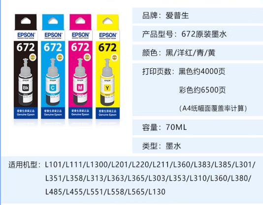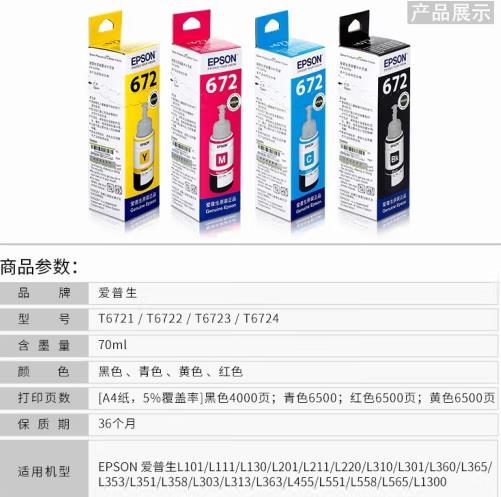 愛普生/EPSON T672 墨水/補(bǔ)充液/墨囊 經(jīng)濟(jì) 環(huán)保 容量大 T672